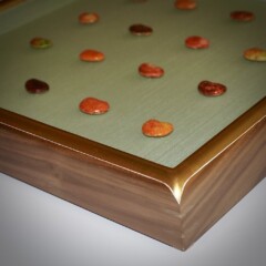 23k Gold Over Red, Round Cap Profile with Tear Drop Corner, Natural Walnut with Splined Corners.